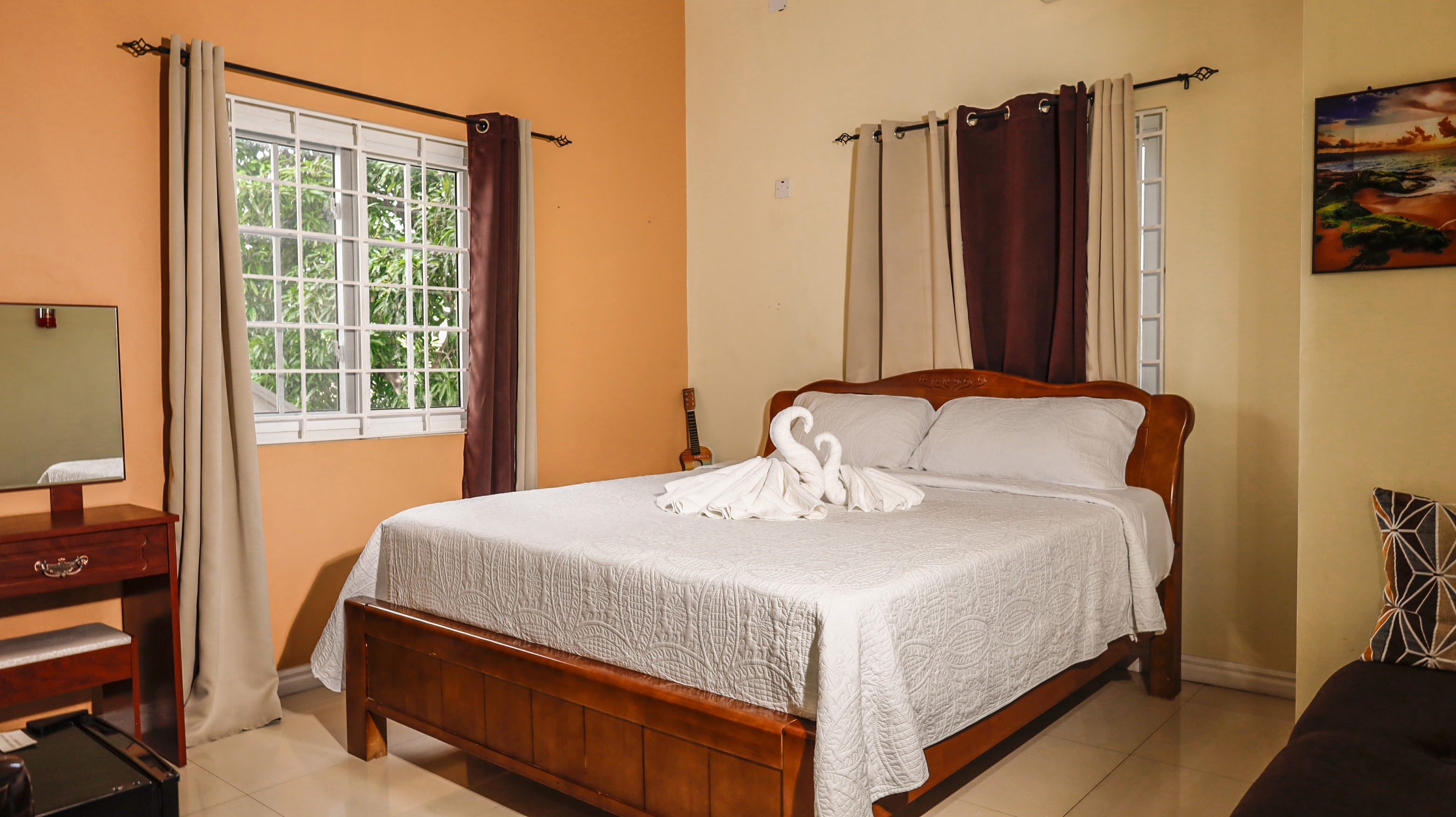 Immerse yourself in the soulful spirit of Jamaica in our Reggae Room. Infused with bold colors, iconic music-themed decor, and a relaxed island vibe, this room offers a true tribute to the heartbeat of Jamaican culture. Ideal for music lovers and free spirits, the Reggae Room features a comfortable queen-sized bed, private bathroom, air conditioning, complimentary Wi-Fi, and all the essentials for a relaxing and culturally rich stay. Unwind where the rhythm never stops.